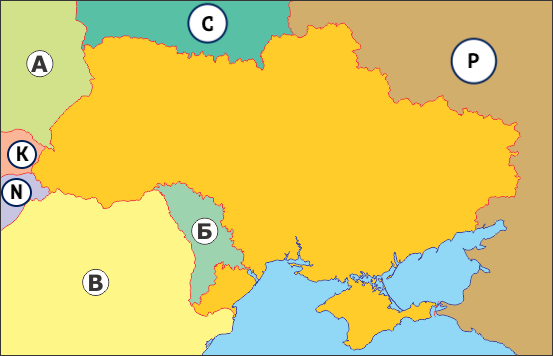 Установите соответствие между государством , которое обозначено на карте буквой и его названием.