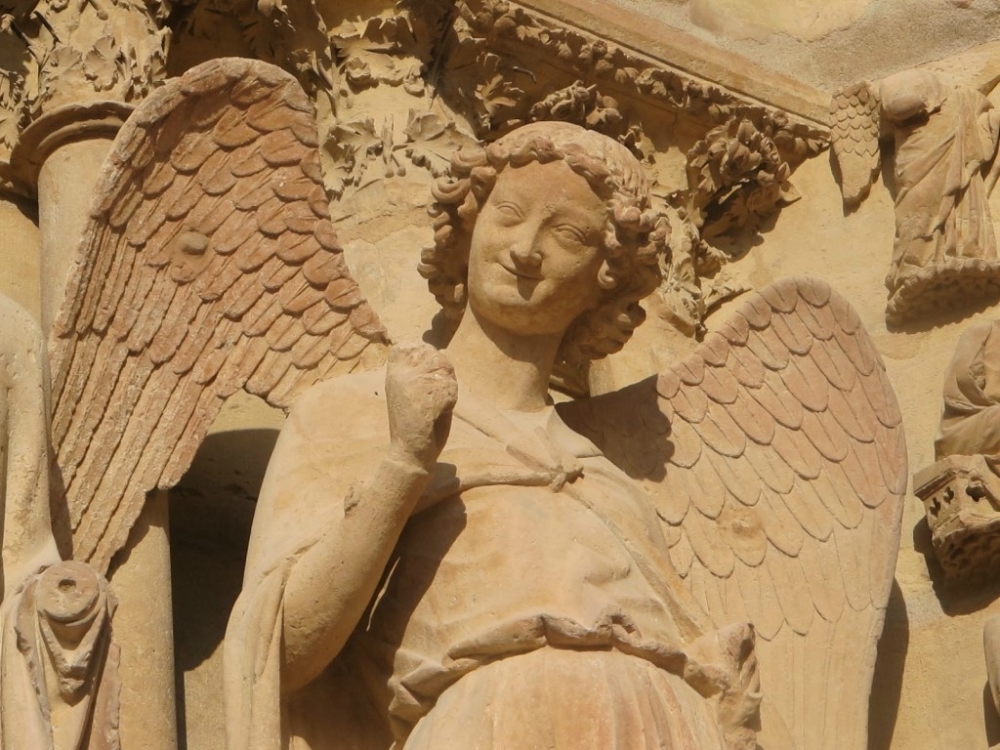 - В скульптурном оформлении трёх фасадов можно явно выделить три основные темы: Страшный суд, Дева Мария, а также картины из жизни Святого Фирмина.