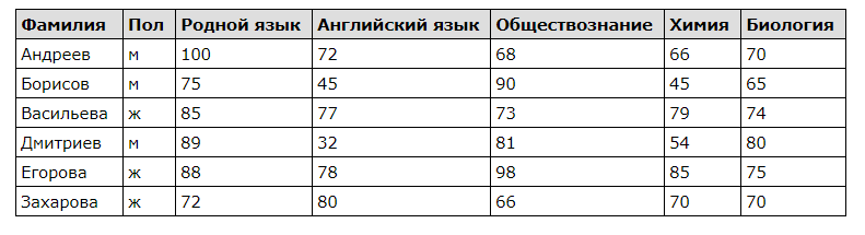 Сколько записей удовлетворяют условию «Пол = 'м' И Обществознание < Биология»?