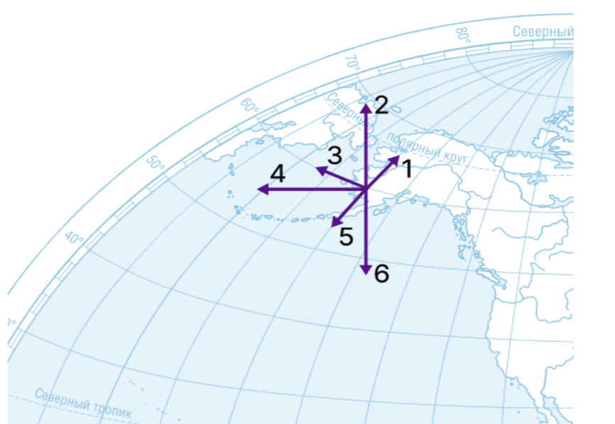 Какой цифрой на фрагменте карты обозначена стрелка, направленная строго на север? (напишите цифру)