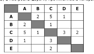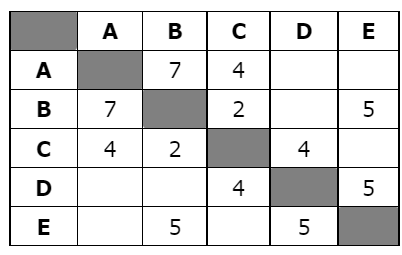 Между населёнными пунктами А, В, С, D, Е построены дороги, протяжённость которых (в километрах) приведена в таблице: