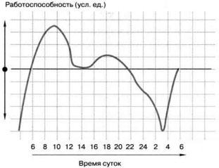 Пользуясь графиком изменения работоспособности, найдите истинные высказывания