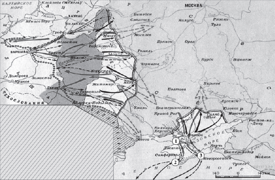 3) К периоду войны, обозначенному на карте, относится переход через залив Сиваш.