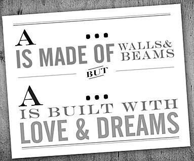 A ... is made of walls and beams, but a ... is built with love and dreams.