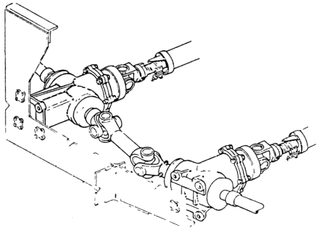 - Горизонтальным валом... по середине фюзеляжа под полом
