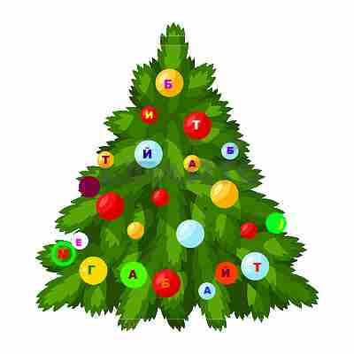 На елочной гирлянде записаны по порядку единицы измерения информации. Несколько шаров развернулись. Вы, конечно, догадались, что на них написано.