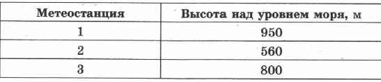 На метеостанциях 1,2 и 3 расположенных на склоне горы, одновременно проводятся измерения температуры воздуха (Т). В таблице показаны результаты этих измерений. Расположите эти метеостанции в порядке увеличения их высоты над уровнем моря (от наименьшей к наибольшей)