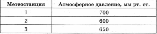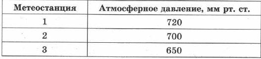 На метеостанциях 1,2 и 3 расположенных на склоне горы, одновременно проводятся измерения атмосферного давления (АД). В таблице показана высота метеостанций над уровнем моря. Расположите эти метеостанции в порядке повышения полученных на них значений АД (от наиболее низкого к наиболее высокому)