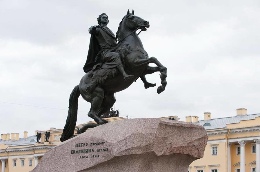 Этот памятник воздвигнут по распоряжению Екатерины II на Сенатской площади в Санкт-Петербурге в честь Петра I.