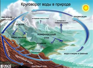 - перенос воды по суше реками в океан