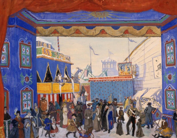 Балет представляет собой весёлое масленичное гулянье. Внимание толпы горожан приковывает к себе балаган Фокусника. Он выводит на сцену трёх кукол, которые под завораживающую мелодию его дудочки постепенно оживают и начинают вести себя, как настоящие люди.