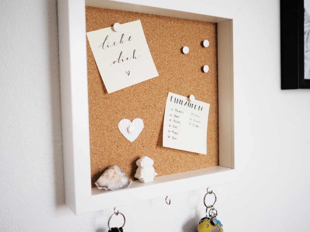 - An der Wand ist eine Pinnwand.