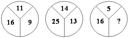Найти закономерность, которой подчиняются тройки чисел в первых двух кругах, и записать недостающее число в третьем.
