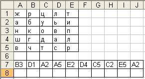 По указанным адресам, записанным в клеточках, выпиши буквы. Слово, которое у тебя получилось, означает:
