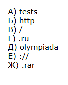 , осуществляется по протоколу http. Фрагменты адреса файла закодированы буквами от А до Ж. Запишите последовательность этих букв, кодирующую адрес указанного файла в сети Интернет.