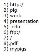 Файл pig.pdf был выложен в Интернете по адресу http://mypigs.ru/pig.pdf. Потом его переместили в каталог work на сайте presentation.edu, доступ к которому осуществляется по протоколу ftp. Имя файла не изменилось.