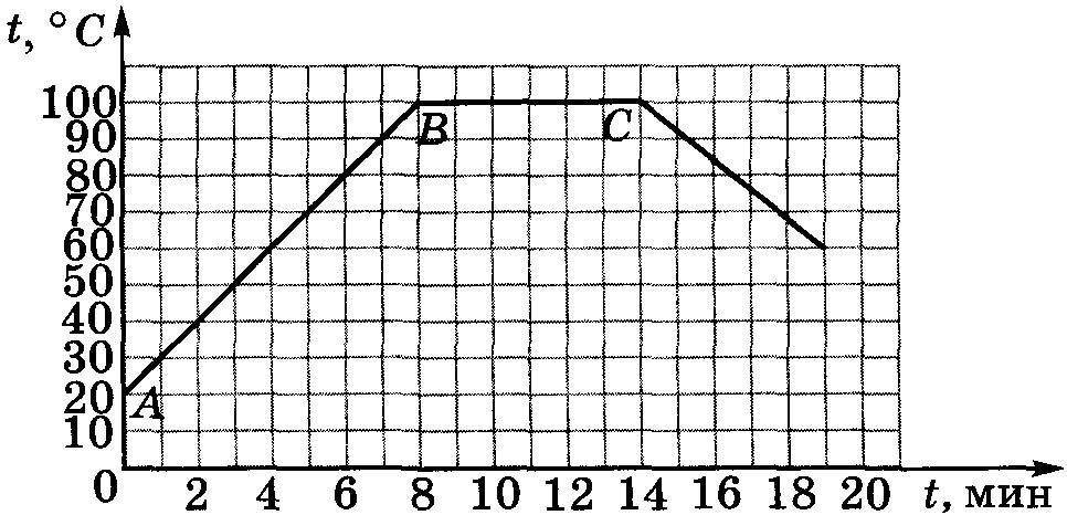 На рисунке изображен график нагревания, кипения и охлаждения жидкости. какой участок на графике соответсвует кипению жидкости и сколько времени длился этот процесс?
