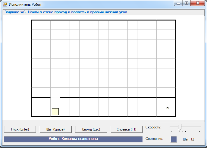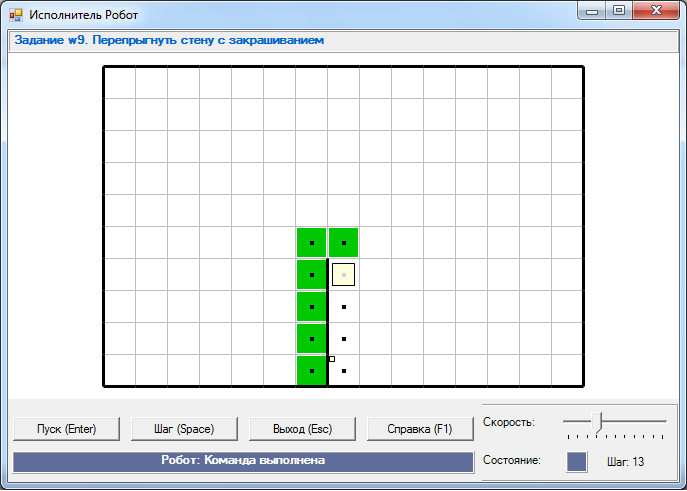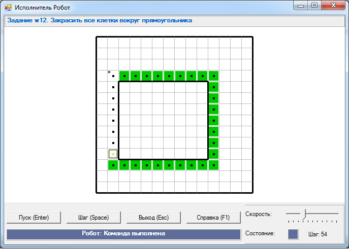 Выберите условие цикла, благодаря которому исполнитель перейдёт в указанную клетку