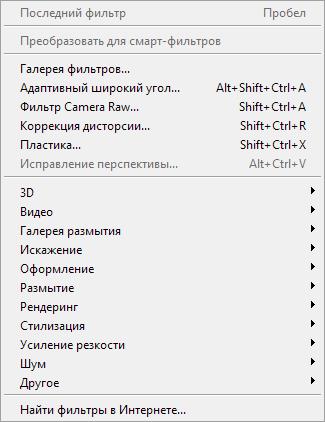 - Фильтры подменю «Резкость»