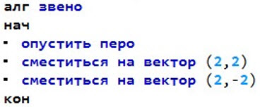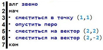 У нас, есть вспомогательный алгоритм для рисования звена, как его необходимо изменить, чтобы для рисования пружинки из трех звеньев, в основном алгоритме достаточно было вызвать его 3 раза и не использовать никаких других команд.