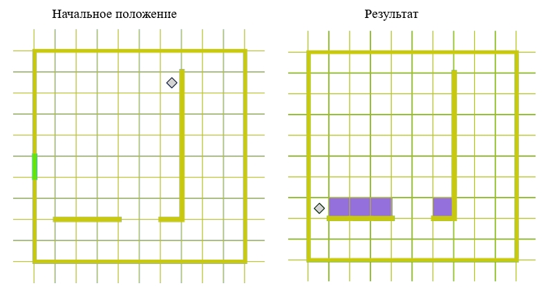 - использовать Робот алг нач нц пока снизу свободно вниз кц нц пока снизу не свободно закрасить влево кц нц пока снизу не свободно влево кц нц пока снизу не свободно закрасить влево кц кон