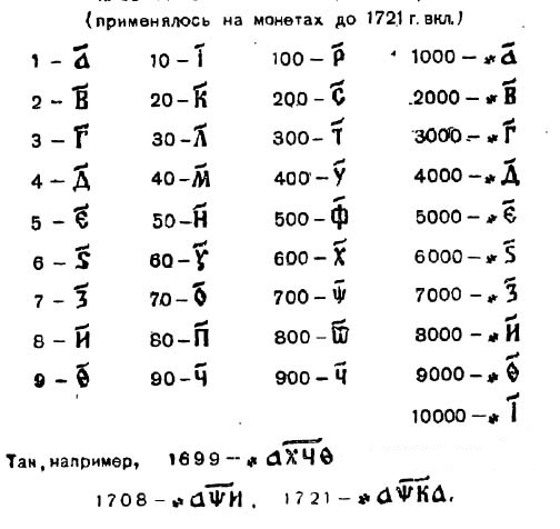 - в древнерусской системе счисления
