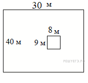 Дачный участок имеет форму прямоугольника, стороны которого равны 40 м и 30 м. Дом, расположенный на участке, имеет на плане форму прямоугольника со сторонами 9 м и 8 м. Найдите площадь оставшейся части участка, не занятой домом. Ответ дайте в квадратных метрах.
