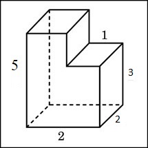 Найдите площадь поверхности и объём многогранника, изображенного на рисунке (все двугранные углы прямые).