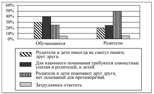 - 5) Равные доли обучающихся и родителей считают, что для взаимного понимания требуются совместные усилия и родителей, и детей.