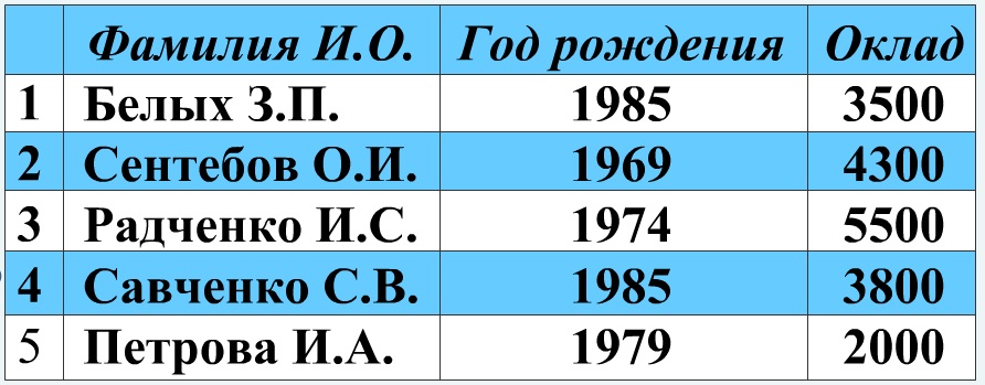 В какой последовательности расположатся записи в базе данных после сортировки по возрастанию в поле Память? Перечислите цифры через запятую без пробелов.