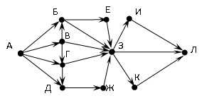 На рисунке – схема дорог, связывающих города А, Б, В, Г, Д, Е, Ж, З, И, К, Л. По каждой дороге можно двигаться только в одном направлении, указанном стрелкой. Сколько существует различных путей из города А в город Л?