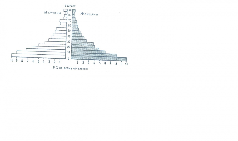 Представленная половозрастная пирамида в общем виде отражает демографическую ситуацию в: