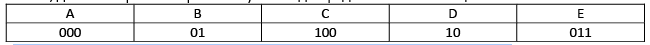 Для пяти букв латинского алфавита заданы их двоичные коды (для некоторых букв – из двух битов, для некоторых – из трех битов). Эти коды представлены в таблице:
