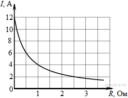 К источнику тока с ЭДС = 6 В подключили реостат. На рисунке показан график изменения силы тока в реостате в зависимости от его сопротивления. Чему равно внутреннее сопротивление источника тока? (Ответ дайте в омах.)