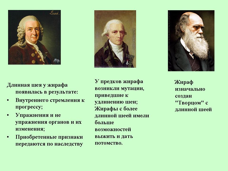 - 1 высказывание - Ж.Б. Ламарк; 2 высказывание - Ч.Дарвин; 3 высказывание - К.Линней
