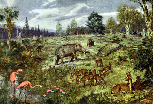 Рассмотрите картинки. Определите название эры (по порядку: 1 рис., 2 рис., 3 рис.), зная состав флоры и фауны в различных временных отрезках Земли.