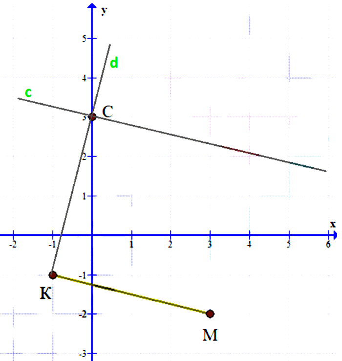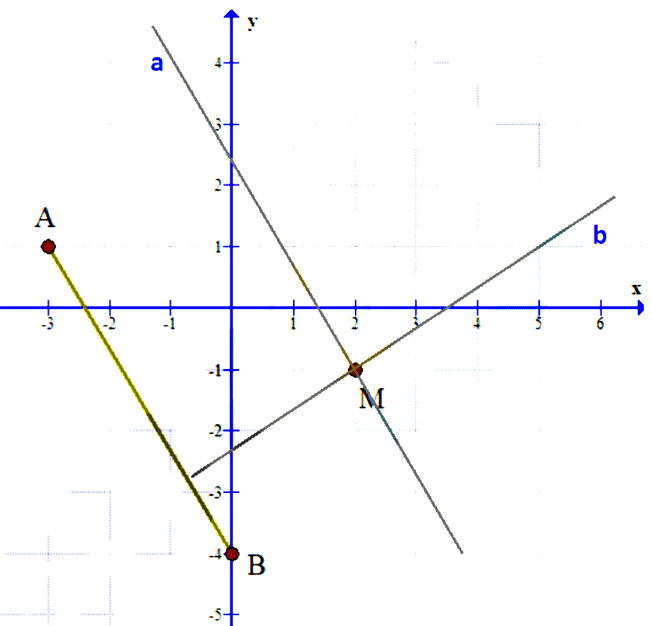 Отметьте на координатной плоскости точки А(-3;1), В(0;-4), М(2;-1). Проведите прямую АВ. Через точку М проведите прямую а, параллельную прямой АВ, и пряму b, перпендикулярную прямой АВ. Выберите рисунок, соответствующий Вашему решению.