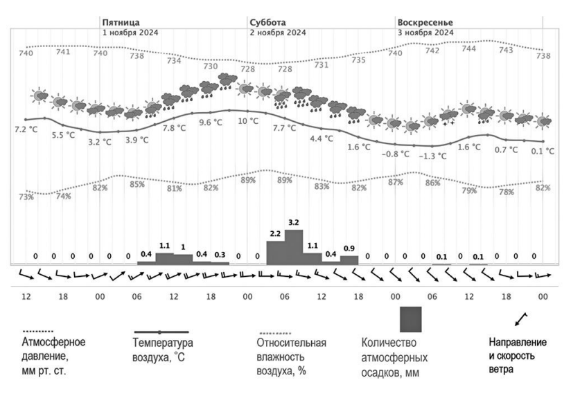 Определите суточную амплитуду температуры воздуха в субботу 2 ноября 2024 г. Если число дробное, то ответ пишем в формате: 11,2