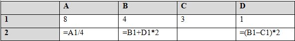 Дан фрагмент электронной таблицы: