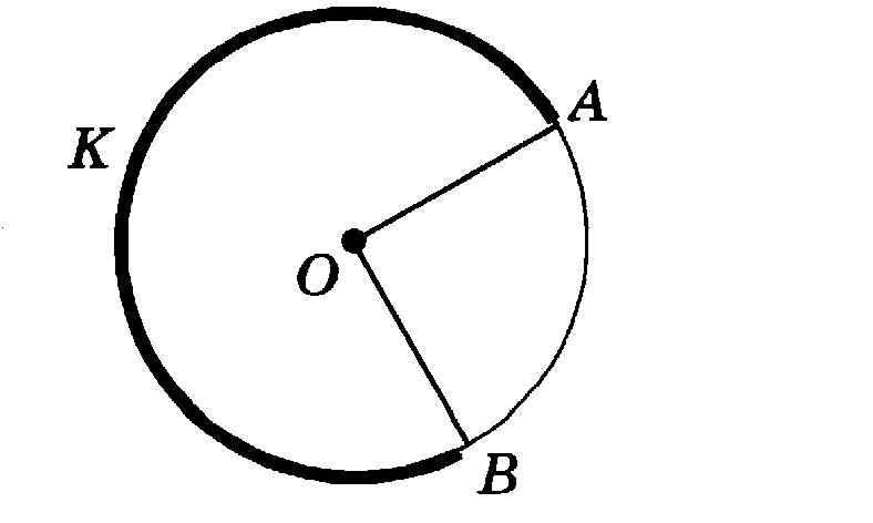 На рисунке угол AOB равен 90 градусов. Длина окружности равна 20 см. Найдите длину дуги AKB