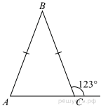 В равнобедренном треугольнике ABC с основанием AC внешний угол при вершине C равен 123°. Найдите величину угла ABC. Ответ дайте в градусах.