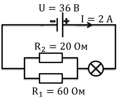 Найдите сопротивление лампочки (в Ом), используя данные на схеме электрической цепи