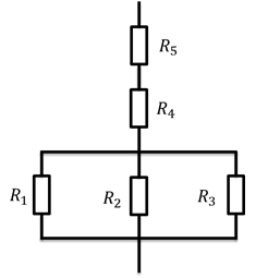 На рисунке указан участок цепи. Исходя из данных на рисунке, найдите силу тока (в А) в резисторе R4. Известно, что напряжение во всей цепи равно 20 В и что никаких других элементов, кроме источника тока в цепи нет.
