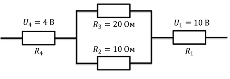 Используя схему, указанную на рисунке, найдите силу тока в цепи (в А), если напряжение на втором резисторе равно 4 В.