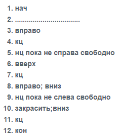 Для стартовой обстановки, изображенной на рисунке, написана программа. Робот находится слева от стены. Высота стены и расстояние до нее любое. Робот должен обойти стену и закрасить клетки с противоположной стороны стены. Ниже дана программа без второй стоки. Какое условие нужно записать во второй строке, чтобы программа работала верно?