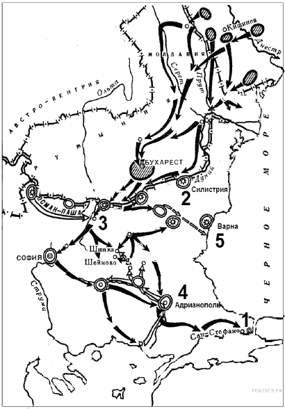 Напишите название обозначенной на карте цифрой «3» крепости, которая в ходе войны длительный период осаждалась основными силами русской армии.
