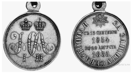 3) Медаль украшена вензелями двух императоров, так как император, при котором началась война, в ходе неё лишился трона в результате дворцового переворота.