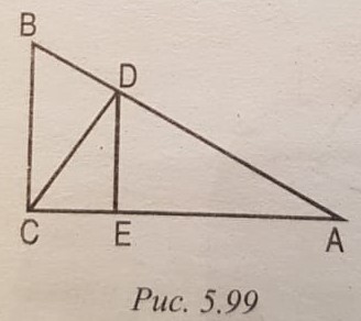 Рис. 5.99. В прямоугольном треугольнике АВС угол С=90, угол А=30, АС=10см, \(СD\perpАВ,\ DЕ\perpАС.\)Найдите АЕ.