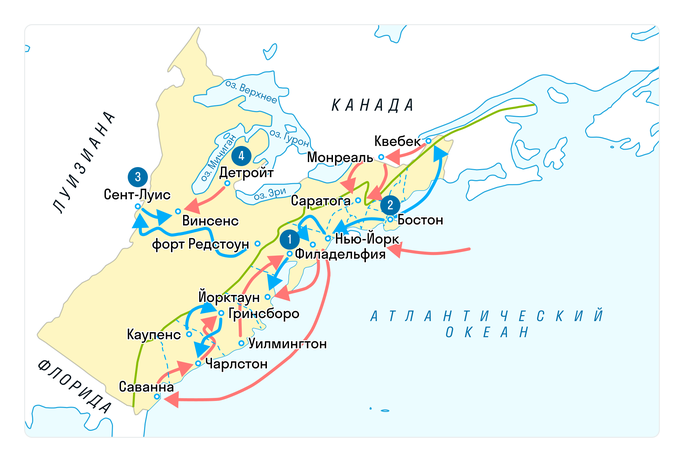 Рассмотри карту и ответь на вопрос. Чем закончилась Война за независимость в США?