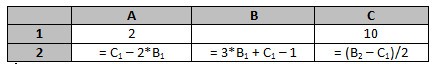Какое целое число должно быть записано в ячейке B1, чтобы диаграмма, построенная по значениям ячеек диапазона A2:С2, соответствовала рисунку? Известно, что все значения ячеек из рассматриваемого диапазона неотрицательны.